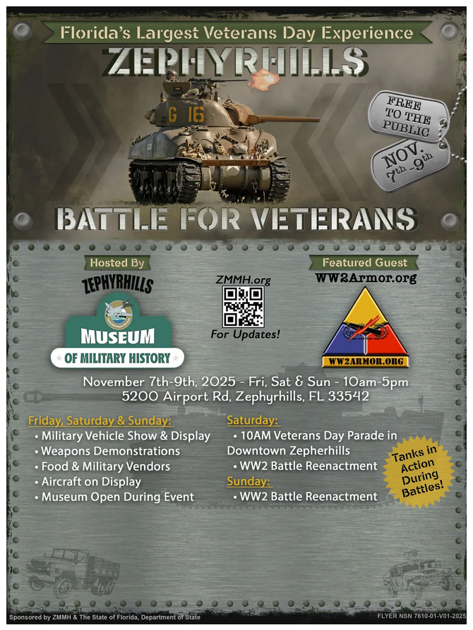 Don’t miss the Zephyrhills Museum of Military History’s Battle for Veterans —an epic three-day tribute honoring those who served.